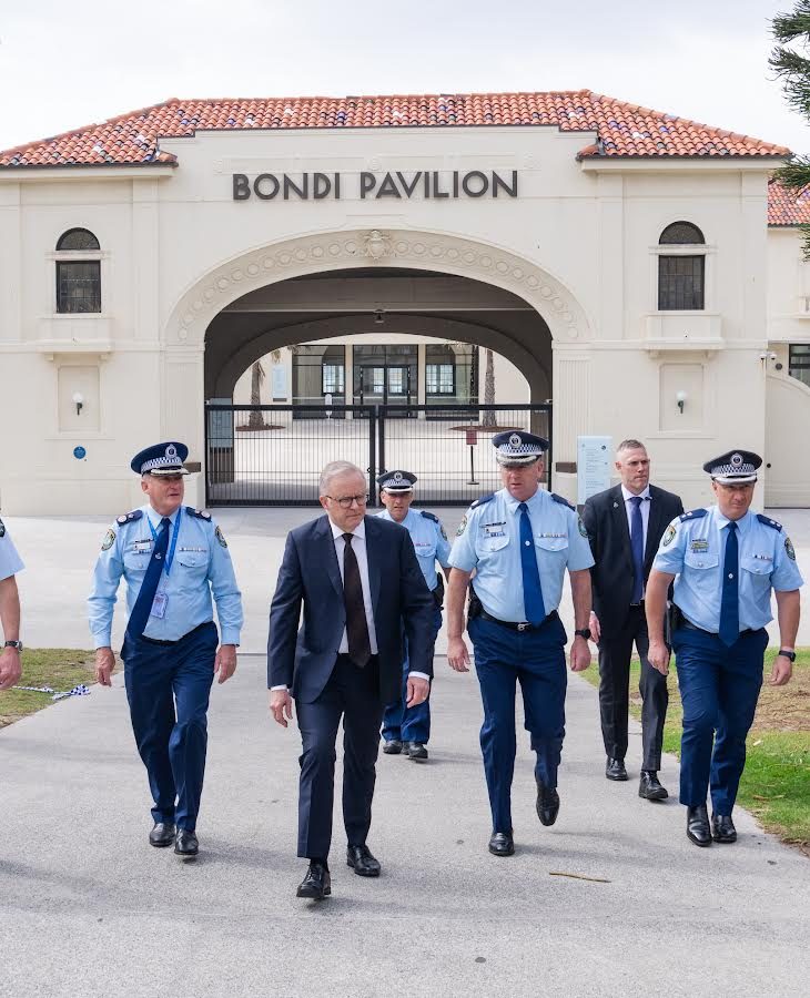 Prime Minister Anthony Albanese on the scene with police at Bondi. Photo: PMO.