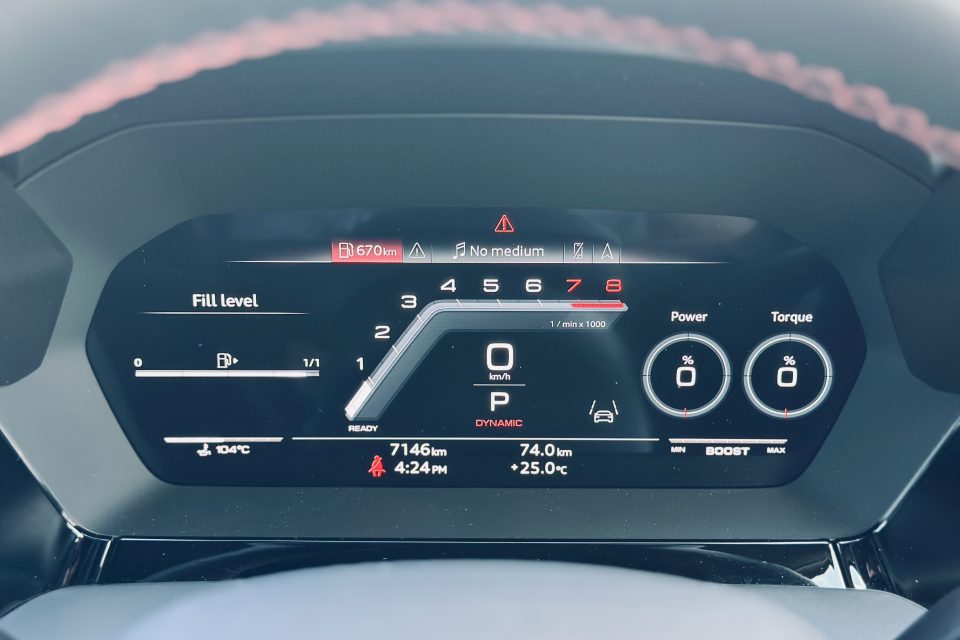 Predictably, then, boot space is also quite piddly, it’s hard to get into (let alone out of), the features are limited to heated seats and a reverse camera, and it’s probably not even worth mentioning fuel consumption, but Audi claims an average of 7.9 litres per 100 km. Mine was more like 8.4, however. Again, for reasons to do with it being a hot hatch.