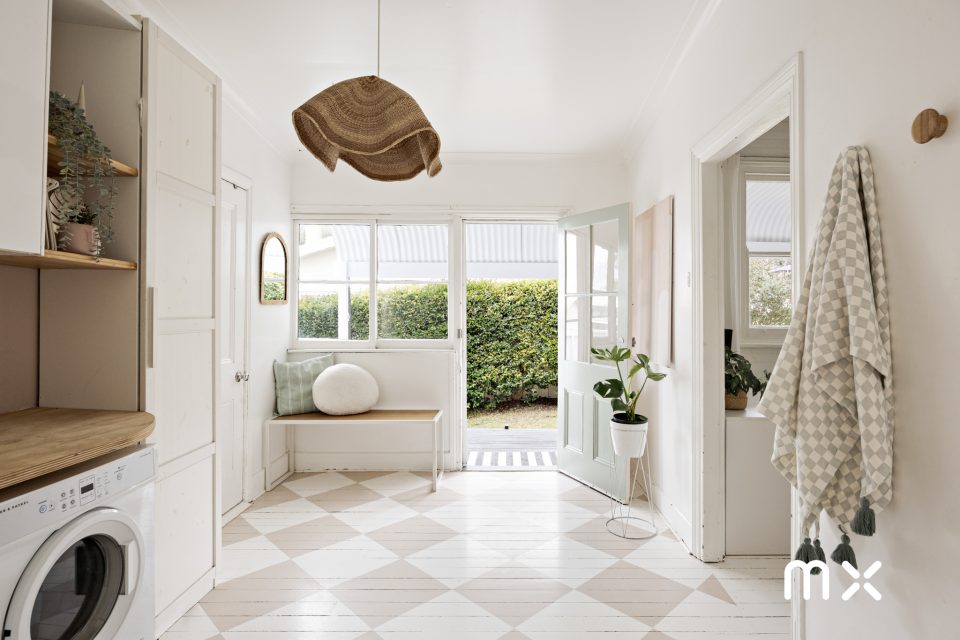 Perched on 700 sqm, it begins at the white picket fence framing cottage gardens, which beckon you to the distinctive wraparound bullnose verandah and through to the light-filled home beyond.