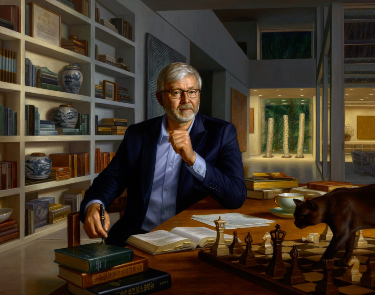 Former Prime Minister Kevin Rudd’s portrait by Ralph Heimans is part of the Parliament House Art Collection, yet some ALP homes won’t hang up a poster of him. Photo: Department of Parliamentary Services.