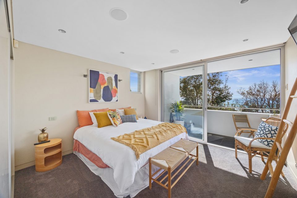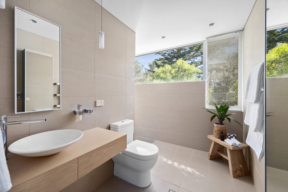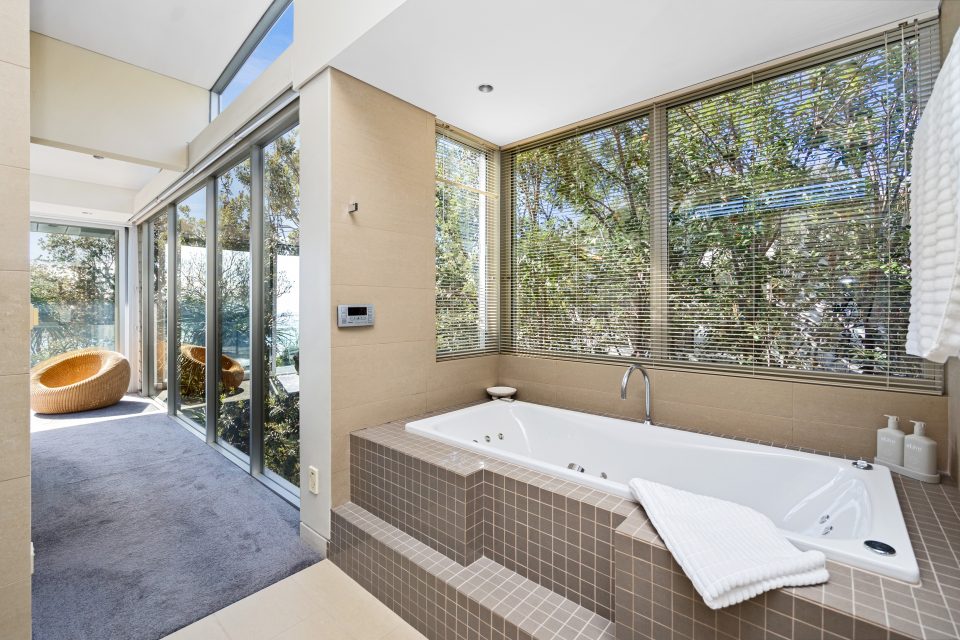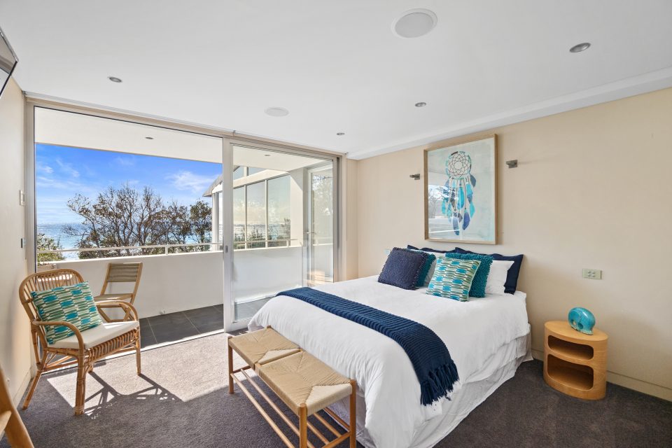Up on the top level are four large bedrooms, each with its own bathroom, and three with balcony views. The master enjoys a huge walk-in robe, spa-style ensuite, and sweeping views up the coastline to nearby Bannister Head.