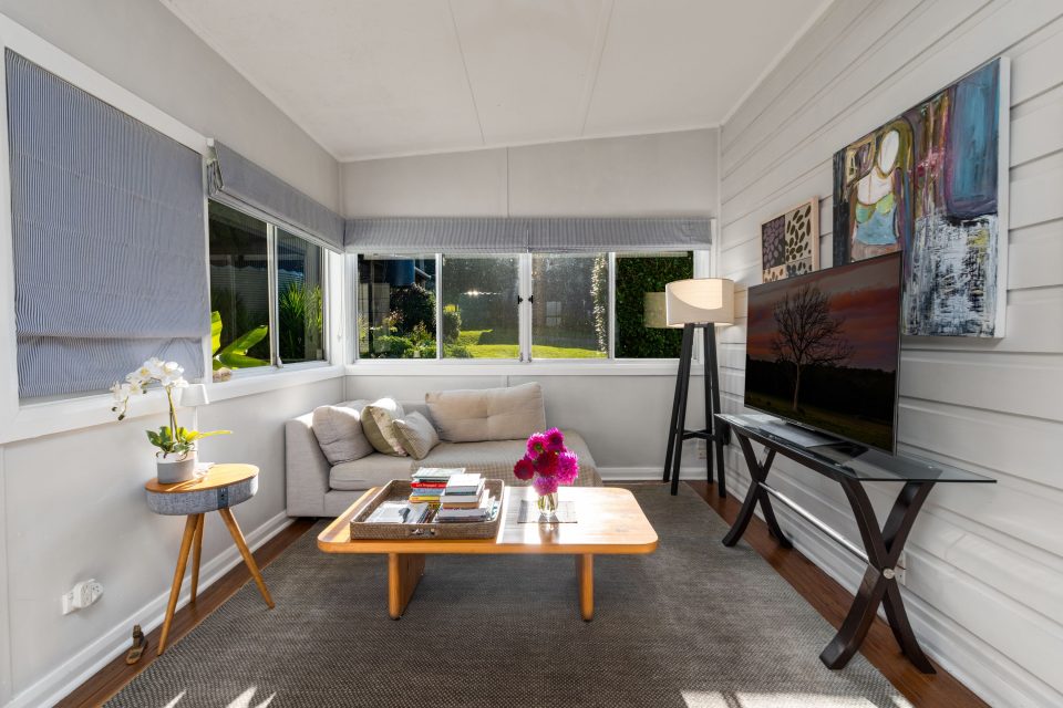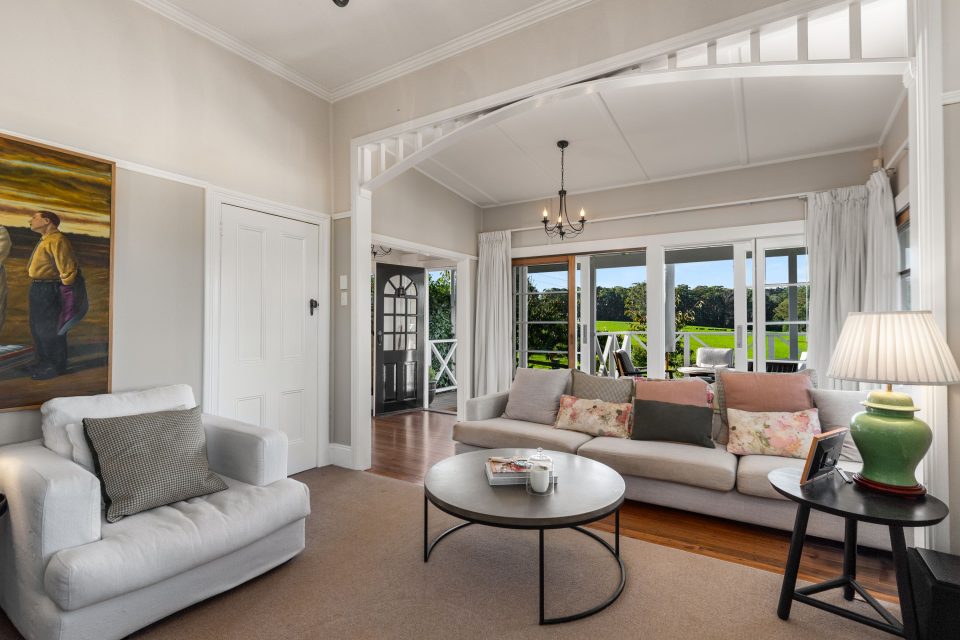 Visitors enjoy a distinct sense of arrival from the moment they step inside the generous living room, which is equipped with a brand-new Jetmaster fireplace.