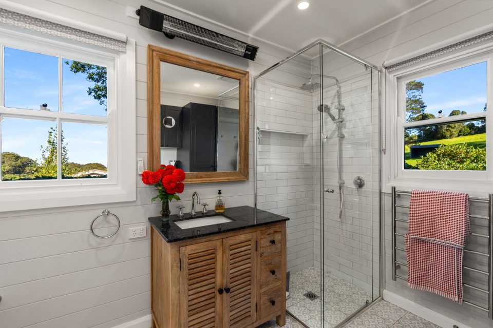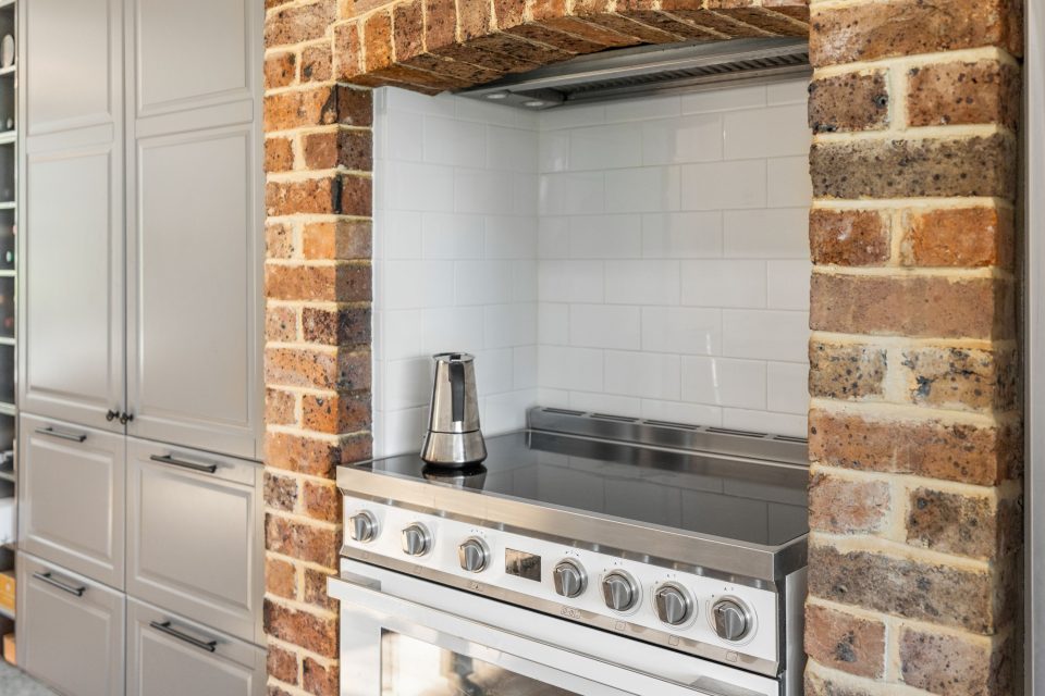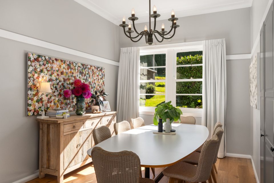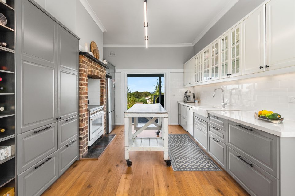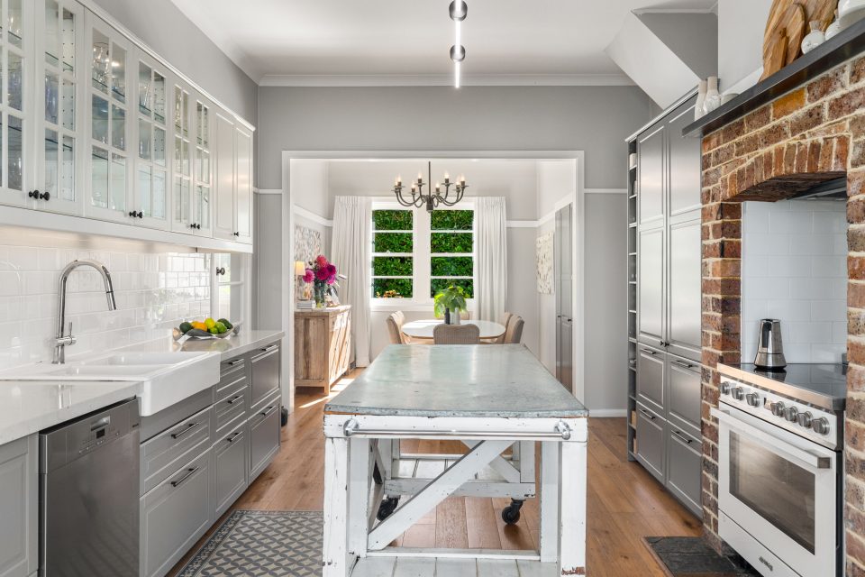 “I also love the country-style kitchen and dining, which blend modern features with that farmhouse style. Raked ceilings, sleek cabinetry and high-end appliances are balanced by the original hardwood floors, stone benchtops, and brick oven surrounds.”