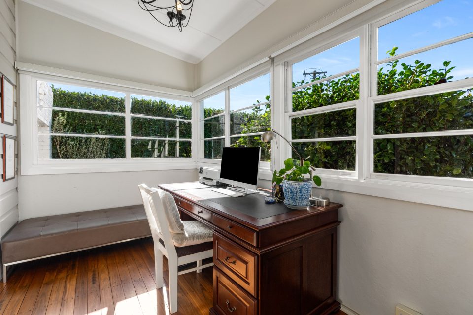 Next to the main lounge area is a sunroom, currently used as a comfortable study. On the other side of the ground level is a handy mudroom, which offers external access through a charming stable-style door.