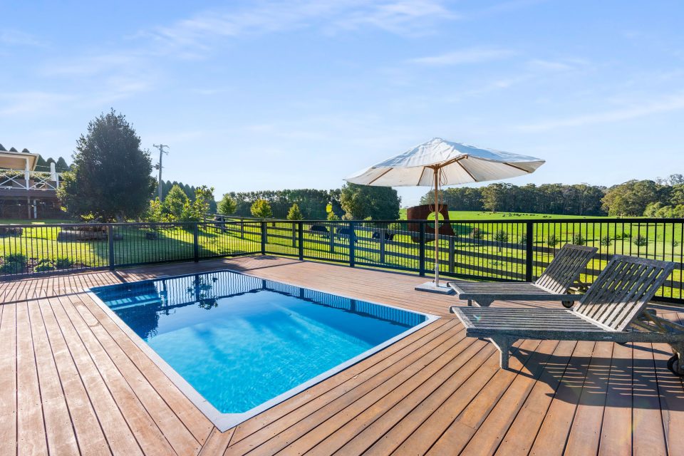 Alfresco cooks and avid hosts will be thrilled by the new hardwood entertainment deck, complete with heaters and a view of the pool, gardens, and pastures beyond.