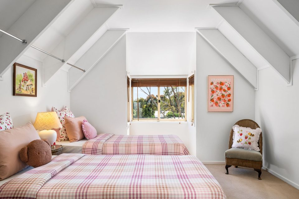 Both bedrooms are spacious with leafy garden views. The downstairs master offers built-in storage and direct access to the backyard, while the upstairs loft has a peaceful atmosphere perfect for guests.